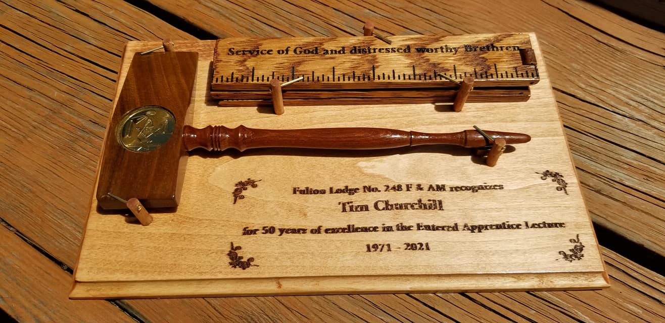 At our Regular Stated Meetng on June 1, we watched Tim Churchill deliver another amazing EA lecture from memory, which marks 50 years of delivering this lecture. We put together a small token of our appreciation to his commitment to the craft.
